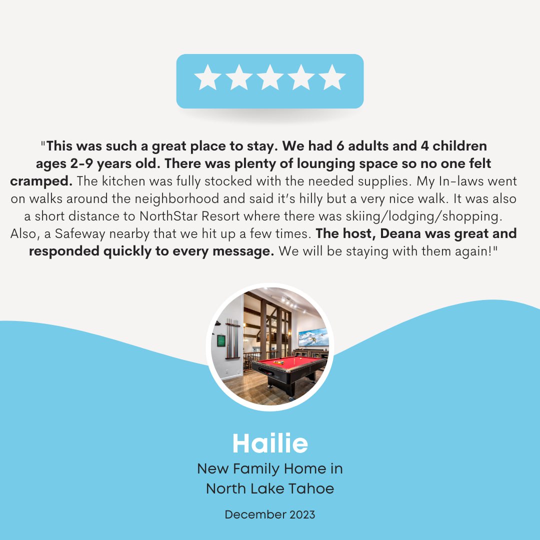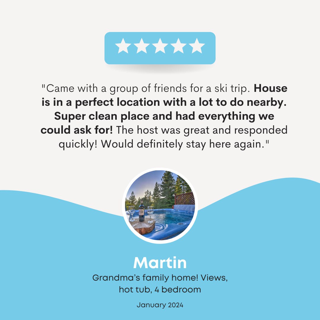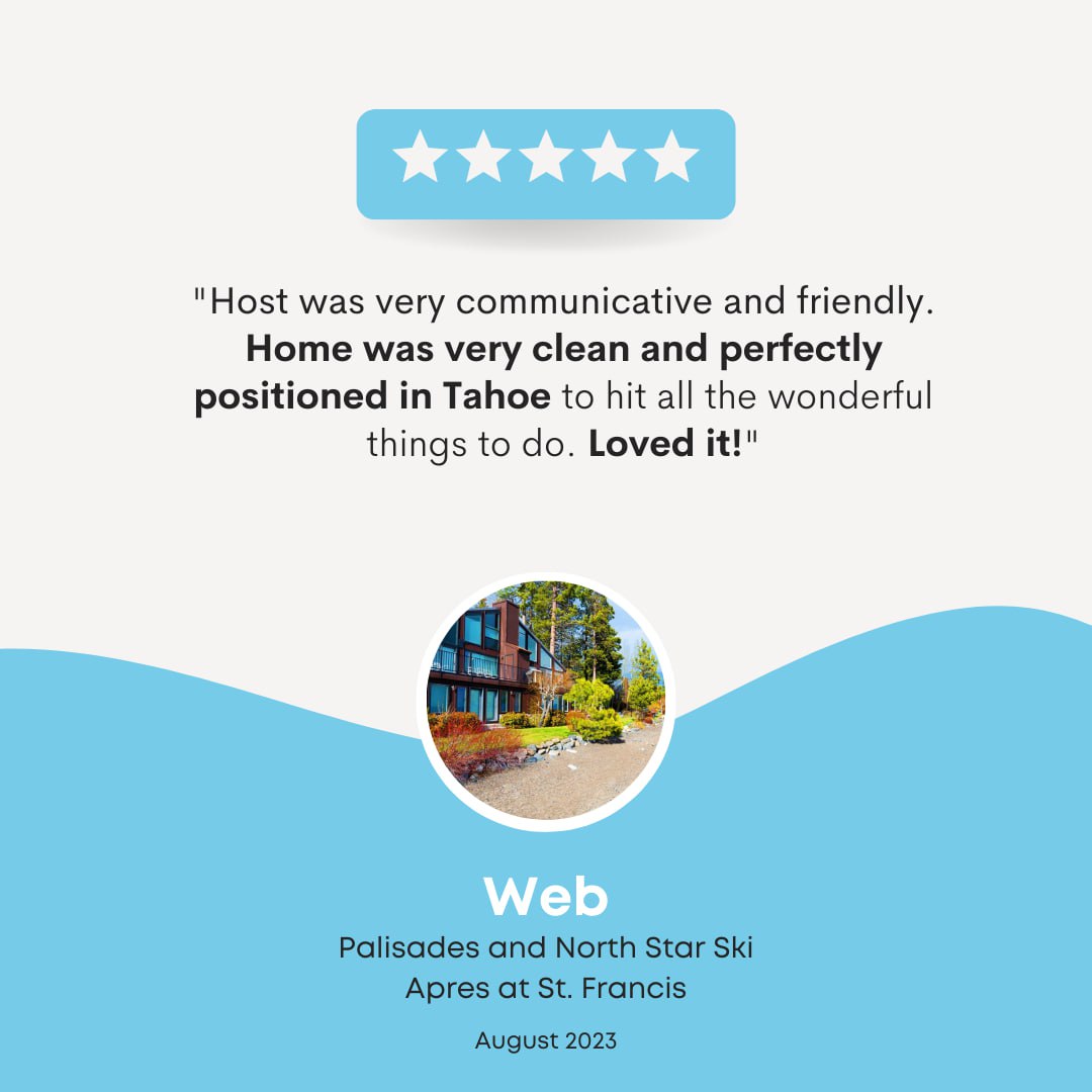 Because we’re recognized as Airbnb Superhosts! This title is a nod to our consistent high ratings and dedication to offering guests exceptional stays. We take pride in our full-service vacation rental property management and are committed to making your Tahoe getaway unforgettable.